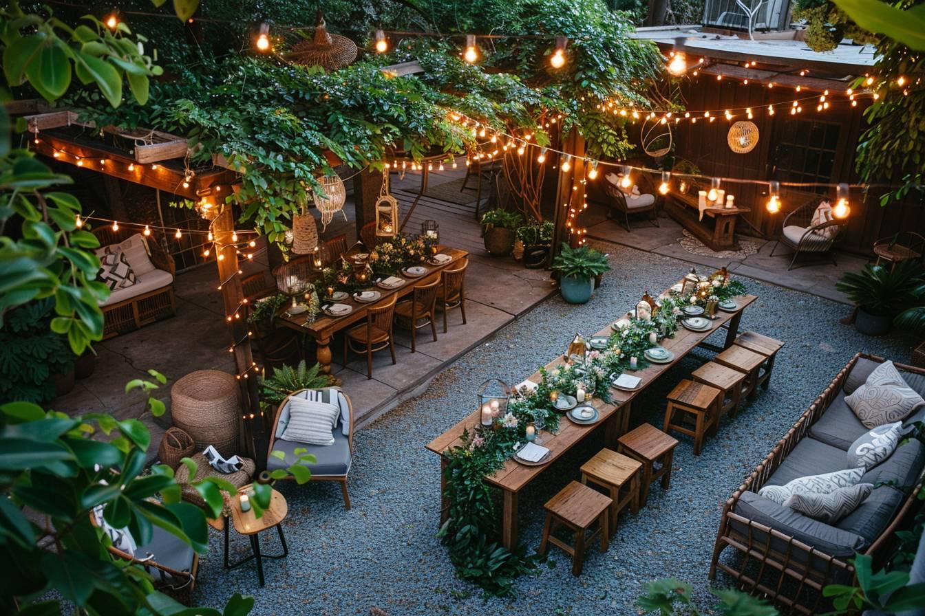 Imaginez des centres de table composés de fleurs locales plantées dans des pots en terre cuite que vos invités pourront emporter, ou encore des guirlandes lumineuses enveloppées autour d’arbres ou de structures en bois recyclé pour une illumination féerique au coucher du soleil. Les possibilités sont infinies et s’adaptent à tous les thèmes.